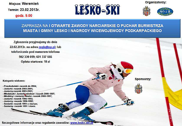 Dla wszystkich miłośników Bieszczad i narciarstwa ośrodek Lesko-Ski, przygotował I Otwarte Zawody Narciarskie o Puchar Burmistrza Miasta i Gminy Lesko i Nagrody Wicewojewody Podkarpackiego.
